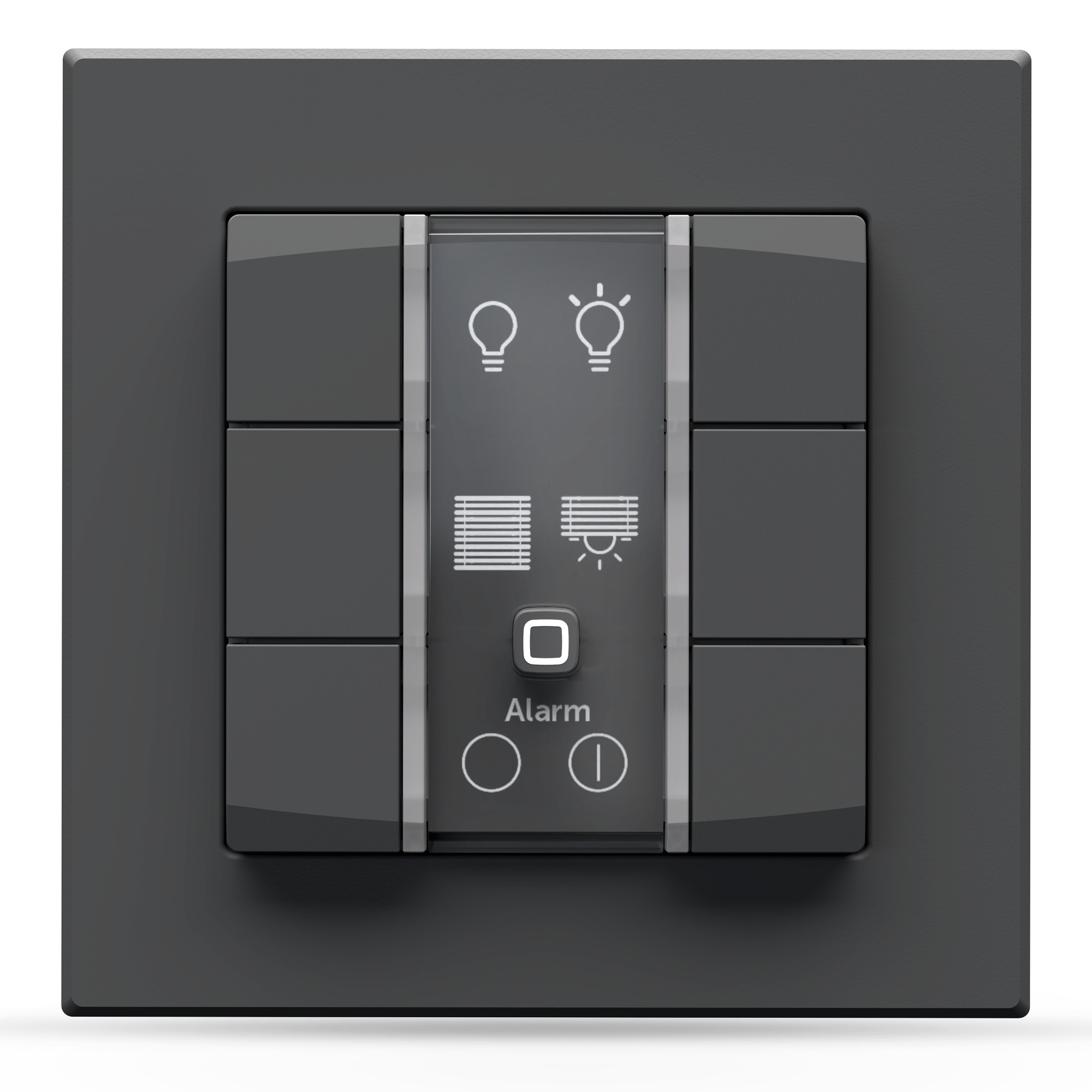| Sechs individuell konfigurierbare Tasten für Funk-Steuerung von Geräten, Gruppen und Szenen |